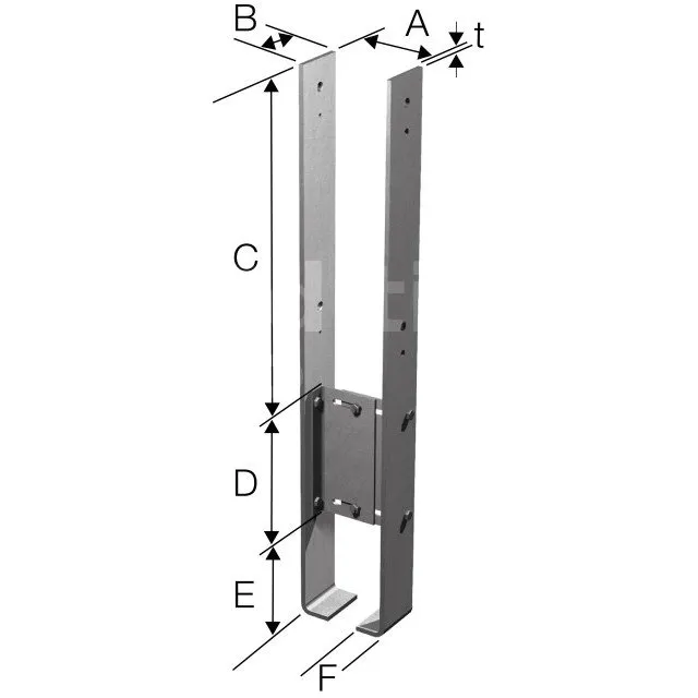 | Pied de poteau fixe en U | Économique, facile à poser, bon maintien latéral | Non réglable, section de poteau unique, moins esthétique |