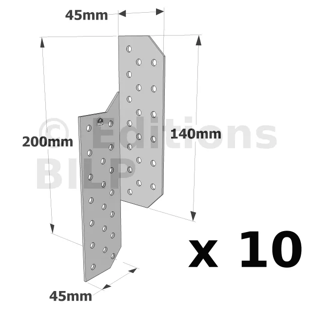 Patte de solivage GAUCHE - 45x200x2mm - Réf. PSG200/45/2_10
