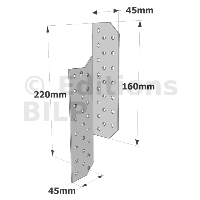Patte de solivage GAUCHE - 45x220x2mm - Réf. PSG220/45/2_10