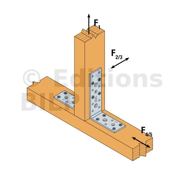 - Fixation bois/bois - type poutre/poutreAile B : 7 ; Aile C : 4 ; type : CNA Ø4.0x35 ou Ø4.0x50 mm - Assemblage avec 2 équerres