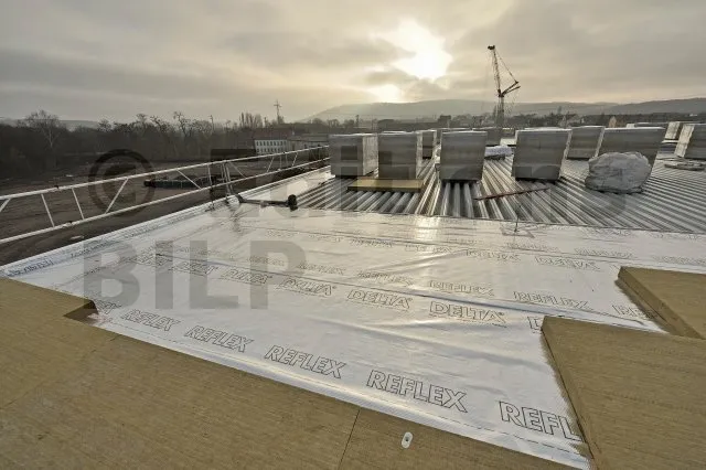 DELTA®-REFLEX est mis en œuvre sur la face chaude de la construction de manière continue en collant les recouvrements entre lés et les différents raccords latéraux ou sorties de conduits de ventilation.
