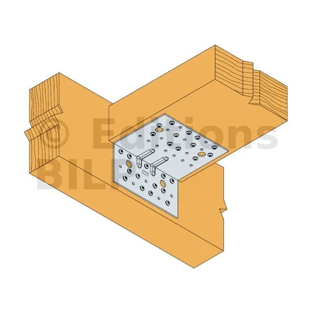 - Fixation bois/bois - type poutre/poutreAile A : 16 ; Aile B : 13 ; type : Pointes annelées CNA Ø4.0x35 ou Ø4.0x50 mm