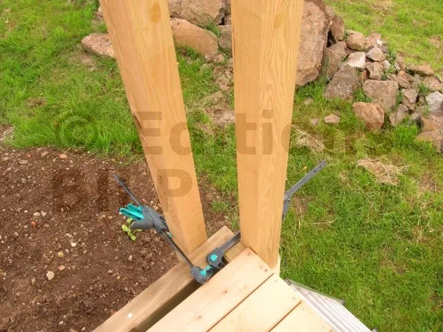 3. Si le support est en bois, l’équerre est aussi pointée ou vissée sur celui-ci,