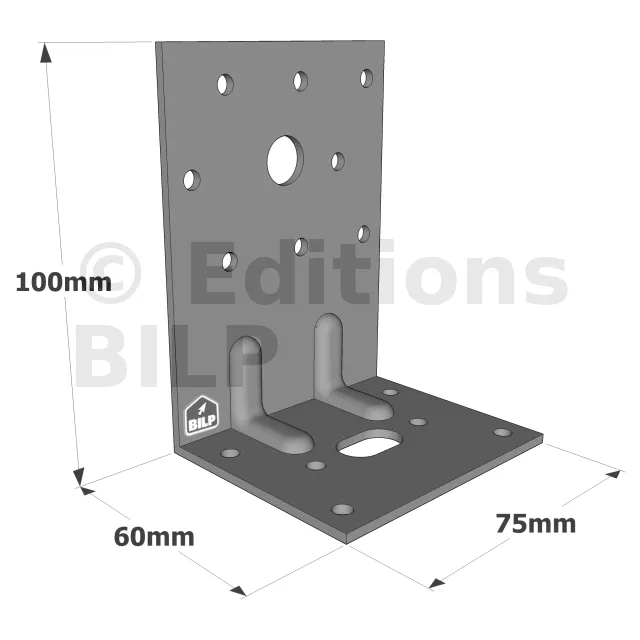 - Fixation bois/bois - type poutre/poutreAile B : 8 ; Aile C : 6 ; type : CNA Ø4.0x35 ou Ø4.0x50 mm - Assemblage avec 2 équerres