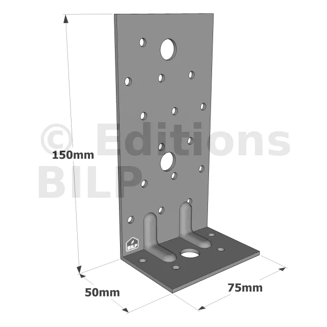 Équerres renforcées CLASSIQUES asymétriques pour le BOIS et le BETON - Réf. E19/3