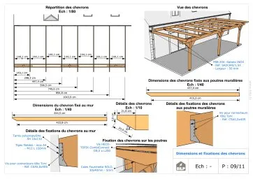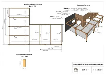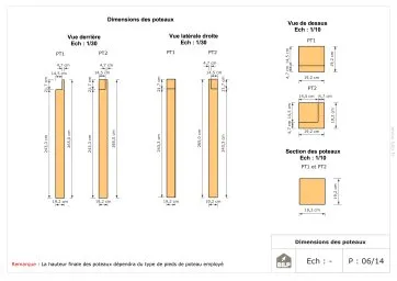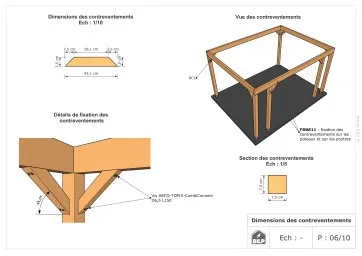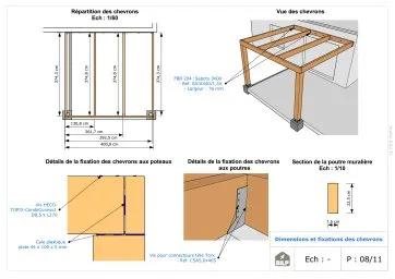 Les plans de structure à l’échelle sont faciles à lire et à comprendre. Ils vous permettrons de réaliser vous-même la structure de votre pergola. Les détails de réalisation sont indiqués. Nous calculons et optimisons les dimensions et les sections de pièces de bois.