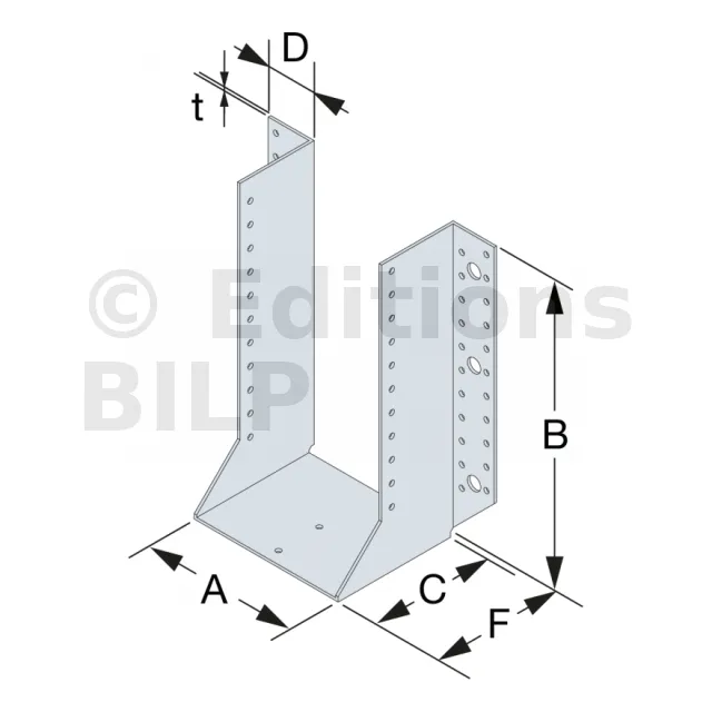 Les sabots GSE en acier galvanisé offrent une flexibilité grâce à des largeurs au choix selon les plages indiquées. Cette caractéristique permet de s’adapter parfaitement aux dimensions spécifiques des éléments de construction, garantissant une compatibilité optimale et une fixation stable.