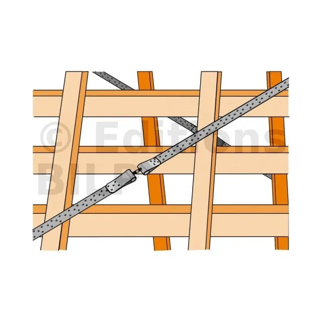 - Fixer l’autre extrémité de ces deux feuillards au tendeur FMBS afin de les associer au centre de la diagonale.