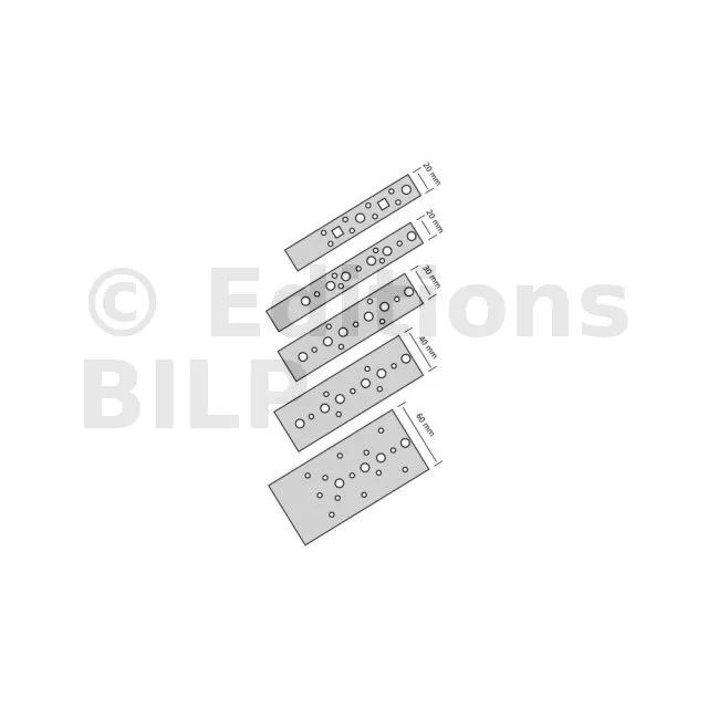 | Références | Dimensions | Perçages | Section minimale [mm²] | |||