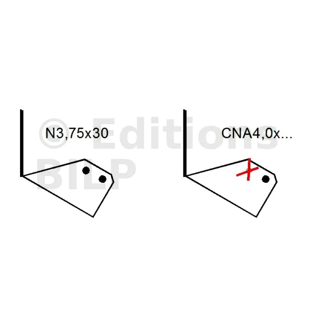 - Pointes annelées CNA Ø 4.0 x 35 ou CNA Ø 4.0 x 50 mm.