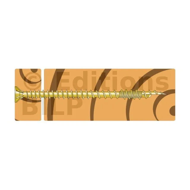 - Une vis dont l’axe est de 45 à 90° du fil du bois dans le cas des ESCR(XXX), et à 90° du fil du bois pour les autres vis.
