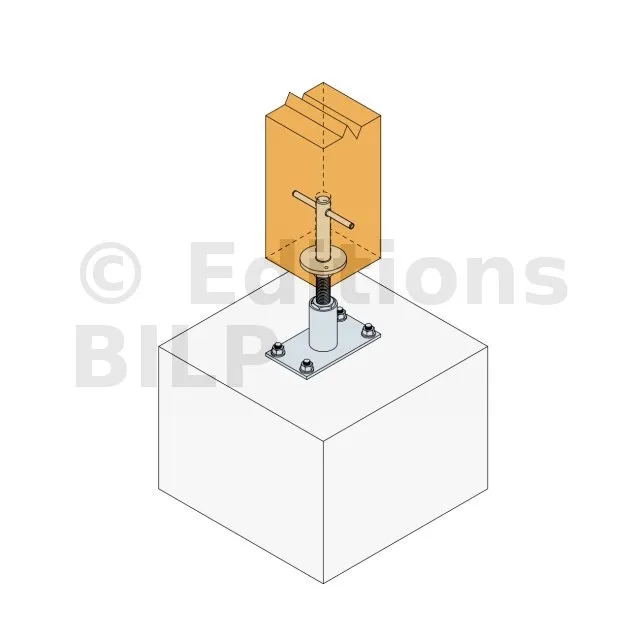 - Connexion bois sur support rigideSur poteau : 4Ø8 (broches STD) ; sur béton : 2Ø12 (goujons WA ; tige filetée)
