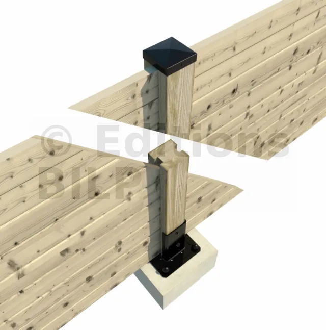 - Pied de poteau ouvert entièrement sur le côté afin de poser la première lame de clôture au plus près du sol.