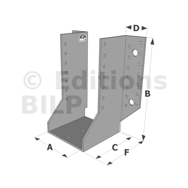 Les sabots GSE en acier galvanisé offrent une flexibilité grâce à des largeurs au choix selon les plages indiquées. Cette caractéristique permet de s’adapter parfaitement aux dimensions spécifiques des éléments de construction, garantissant une compatibilité optimale et une fixation stable.