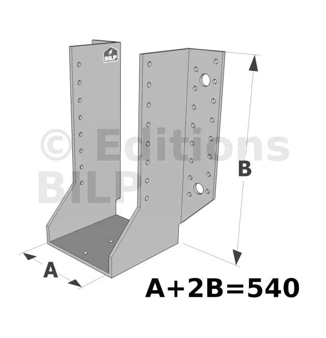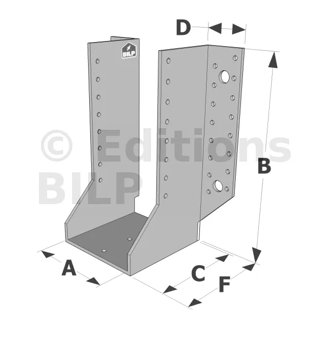 Les sabots GSE en acier galvanisé offrent une flexibilité grâce à des largeurs au choix selon les plages indiquées. Cette caractéristique permet de s’adapter parfaitement aux dimensions spécifiques des éléments de construction, garantissant une compatibilité optimale et une fixation stable.