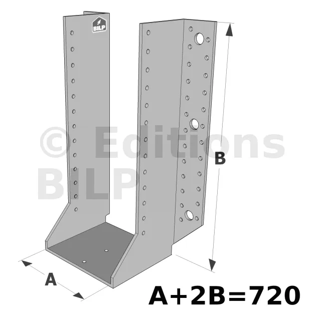 Les sabots GSE en acier galvanisé offrent une flexibilité grâce à des largeurs au choix selon les plages indiquées. Cette caractéristique permet de s’adapter parfaitement aux dimensions spécifiques des éléments de construction, garantissant une compatibilité optimale et une fixation stable.