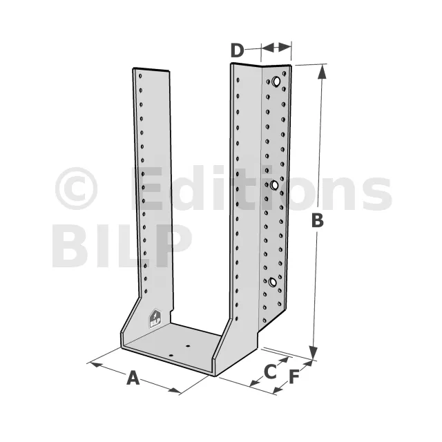 Les sabots GSE en acier galvanisé offrent une flexibilité grâce à des largeurs au choix selon les plages indiquées. Cette caractéristique permet de s’adapter parfaitement aux dimensions spécifiques des éléments de construction, garantissant une compatibilité optimale et une fixation stable.