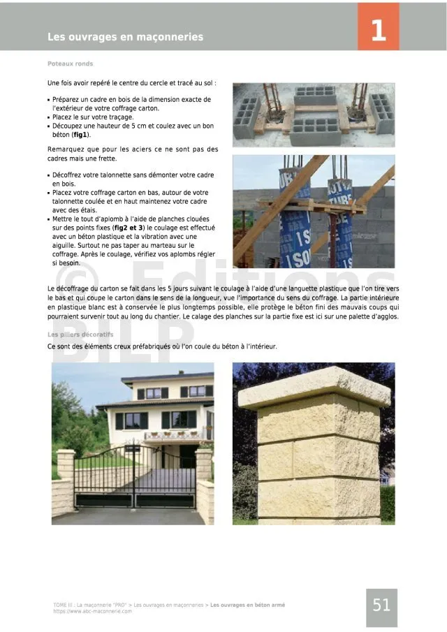 - pour la mise en pratique (le Tome III « La maçonnerie PRO » , Le Tome IV « Le coffrage », le Tome V « La charpente et couverture », Le guide de construction des portails et des clôtures, Le guide de construction des barbecues, Le guide de construction des escaliers, Le guide de construction des murs de soutènement).
