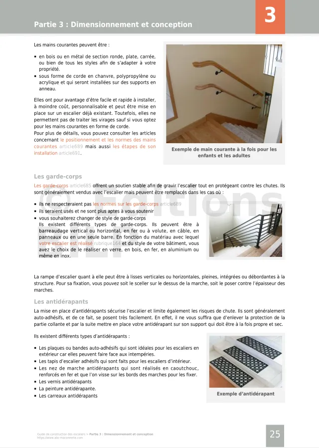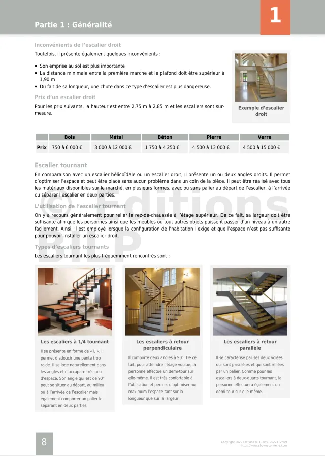 Sommaire du guide de construction des escaliers
