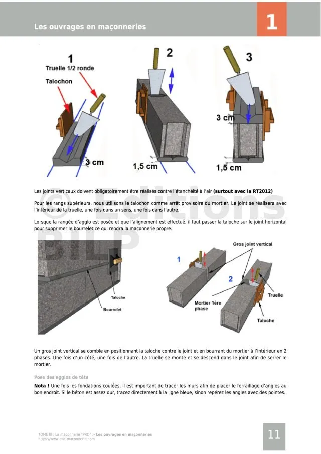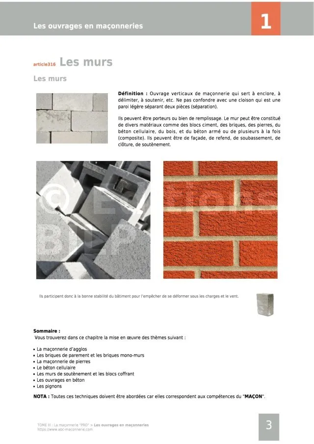 - Les ouvrages en maçonneries