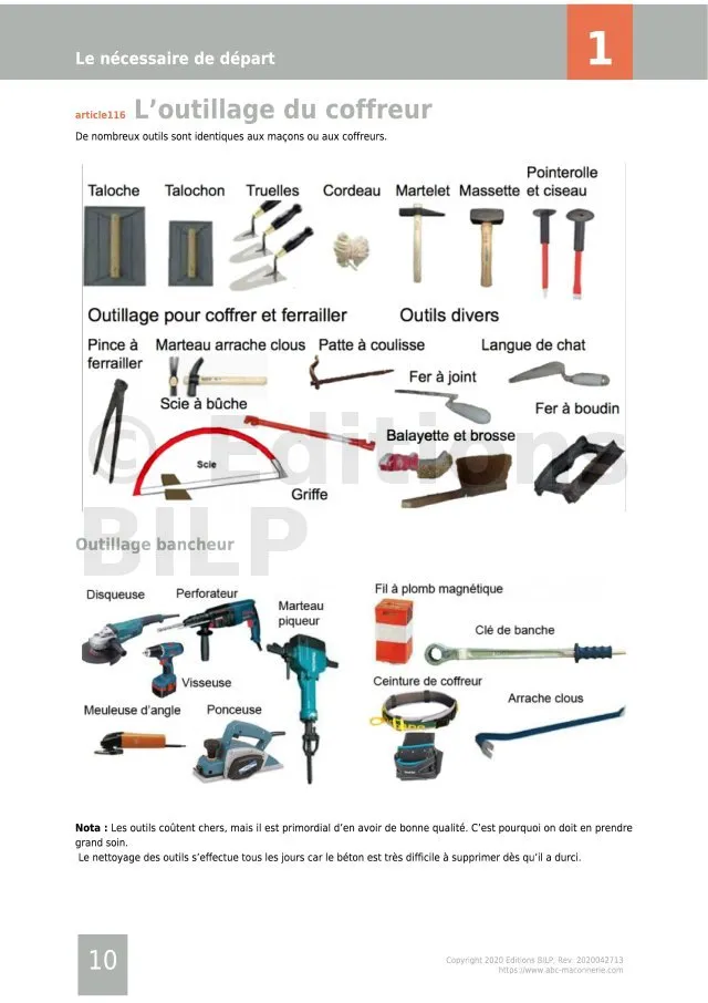 - L’outillage du coffreur