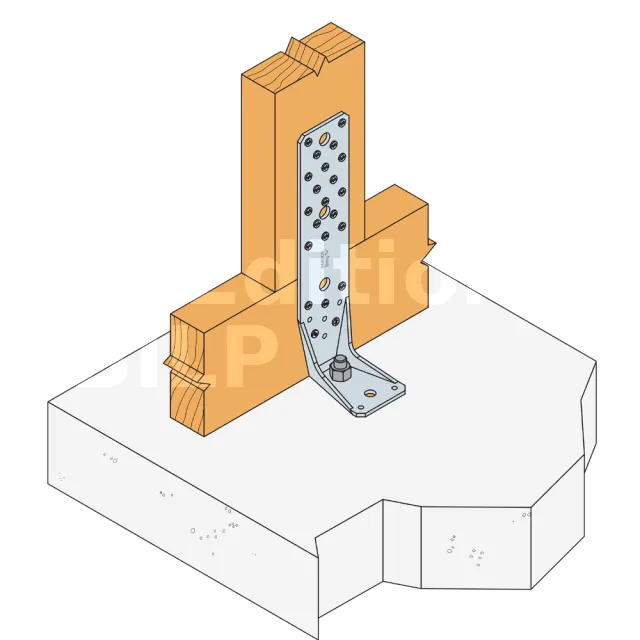 Voir la gamme d’ancrage Simpson Strong-Tie pour trouver le produit adéquat. Les solutions d’ancrage typiques sont BOAXII, SET-XP, WA, AT-HP et dépendent du type de béton, l’entraxe et les distances aux bords.