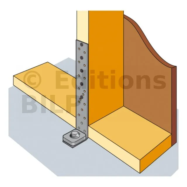 - Permet d‘ancrer solidement le mur ossature bois au sol (préconisé en zone sismique),