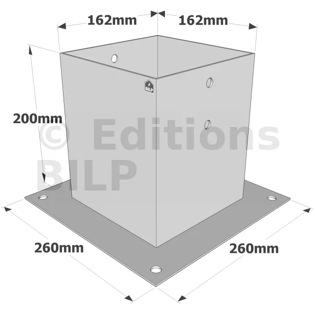 Pied de poteau carré à boulonner - Finition GALVANISEE - Réf. PPJBT160