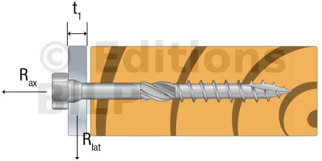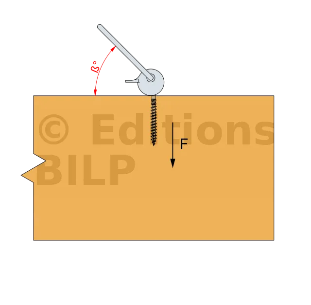 - Vis SSH installée perpendiculairement à la fibre du bois et sollicitée avec un angle,