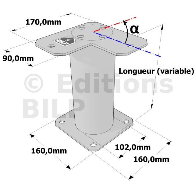 Poteau structurel OSP - D102mm - Platine haute en angle 90x170mm - Embase 160x160mm
