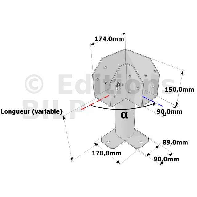 Poteau structurel OSP - D89mm - Platine haute en L 90x174x150mm - Embase en angle 90x170mm