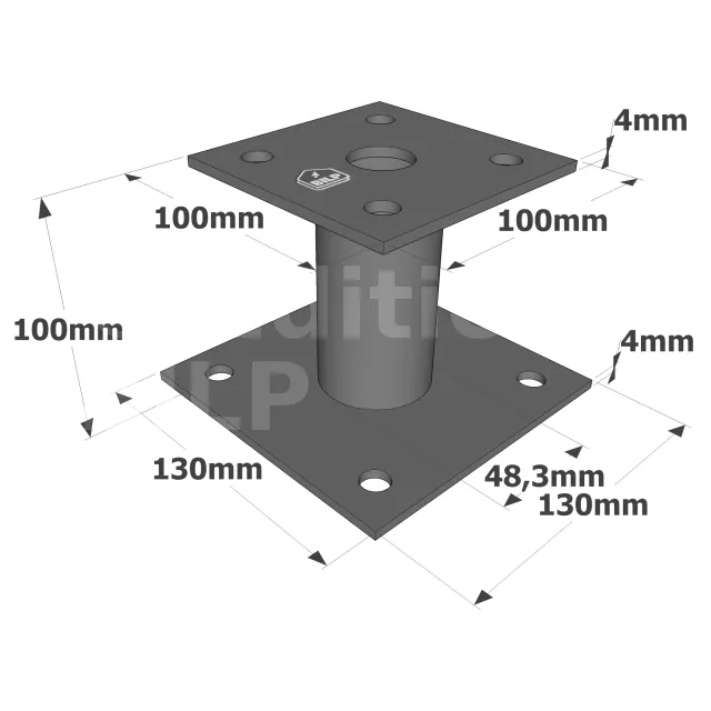 1. Placer la platine supérieure du pied de poteau (dimensions 100 x 100 mm) sous le poteau.