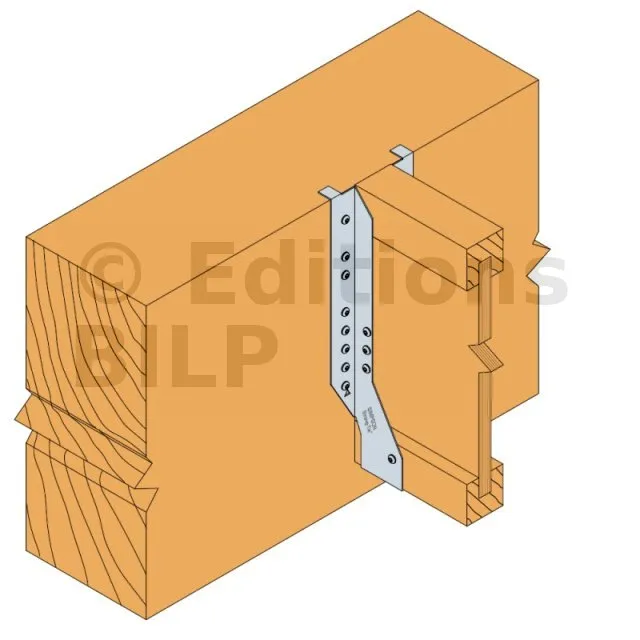 Pour reprendre des efforts au soulèvement, les pointes torsadées doivent être insérées dans les perçages inférieurs (insertion à 45° dans la membrure basse) et dans les perçages triangulaires (des renforts d’âme sont alors nécessaires).