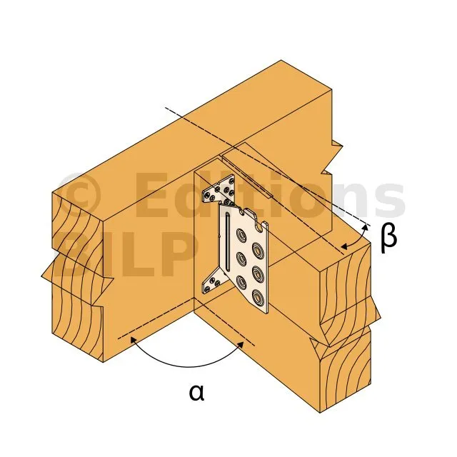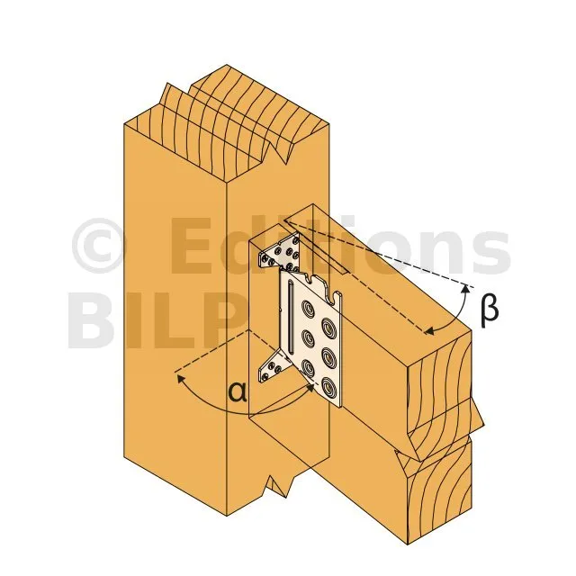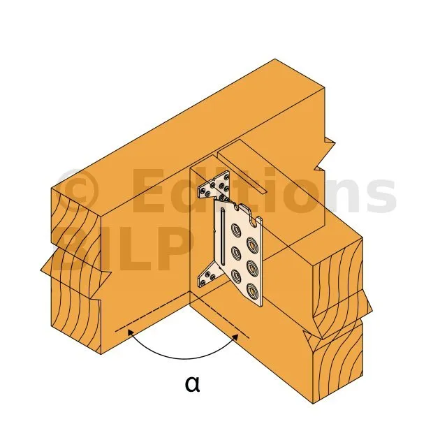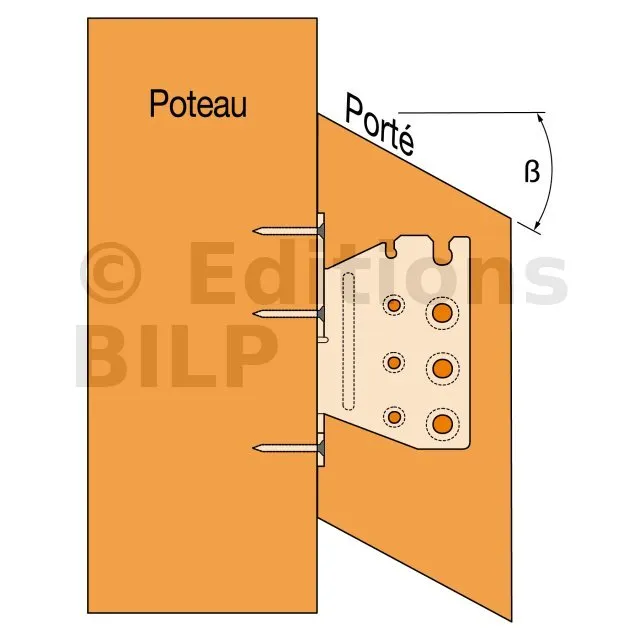 - Fixation solive sur poteau - clouage total - avec pente et angle α=60°Porteur : 5XCNA4,0x50 - Porté : 4XSTD8