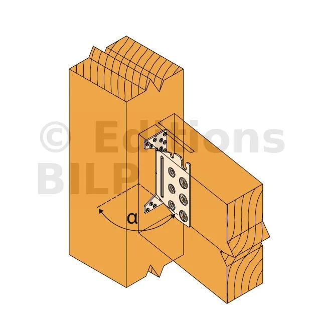 - Fixation solive sur poteau - clouage total - avec pente et angle α=30°Porteur : 5XCNA4,0x50 - Porté : 4XSTD8