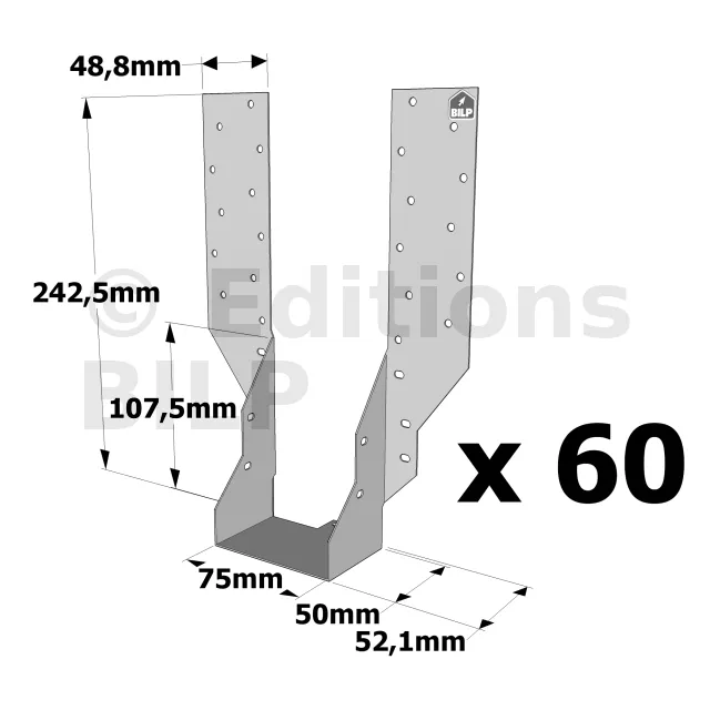 Sabot à bretelles JHA : la solution fiable pour vos solivages - Réf. JHA270/75_60