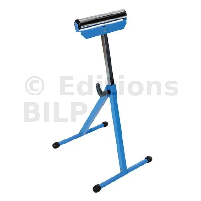Support avec rouleau pour supporter les pièces de travail de grande taille et d’un poids pouvant aller jusqu’à 60 kg. Rouleau chromé à embase en acier ultra-résistant. Hauteur réglable de 685 à 1 080 mm.