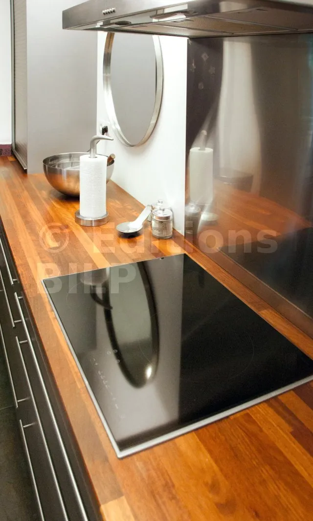 - Les lambris intérieurs, rampes d’escalier, portes, cuisines, huisseries et meubles.