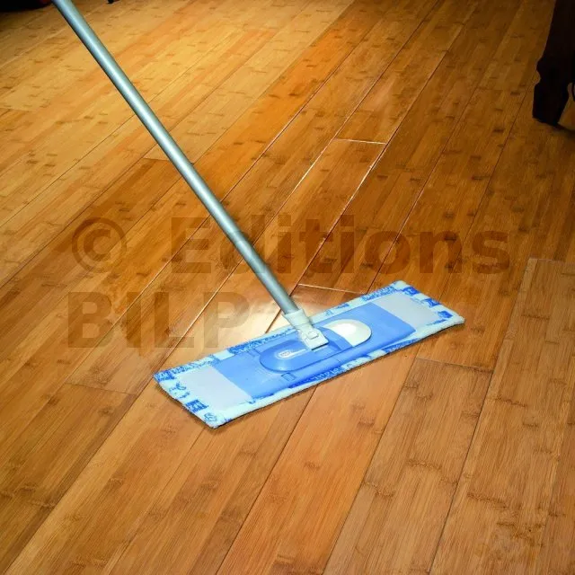 - Après séchage, effectuer un rinçage à l’eau avec un balai serpillière en évitant de faire des flaques.
