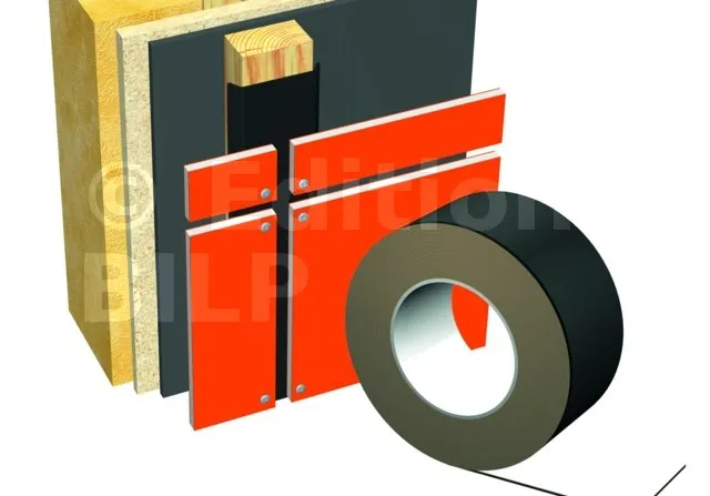 Cahier du CSTB 3316 « Ossature bois et isolation thermique des bardages rapportés faisant l’objet d’un Avis Technique ou d’un constat de traditionnalité » qui impose de protéger la face avant des chevrons ou des contre-lattes sur toute leur hauteur des projections et/ou ruissellement d’eau de pluie par une bande d’étanchéité lorsque les bois d’ossature ne sont traités qu’en classe 2 de risques biologiques.
