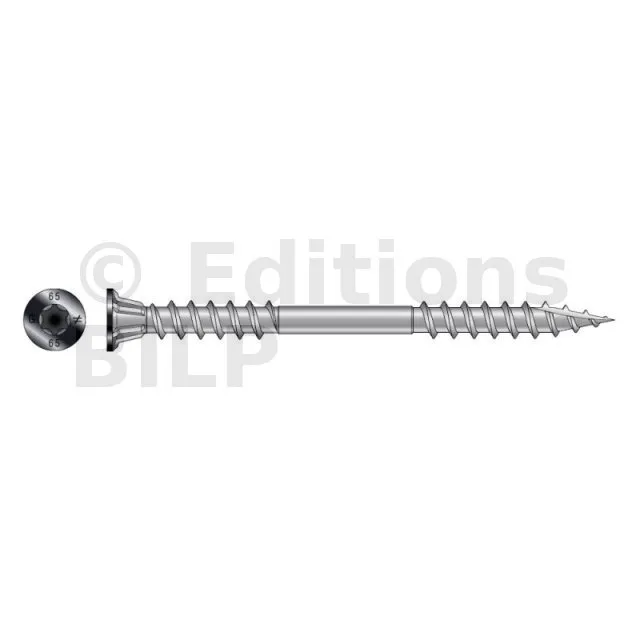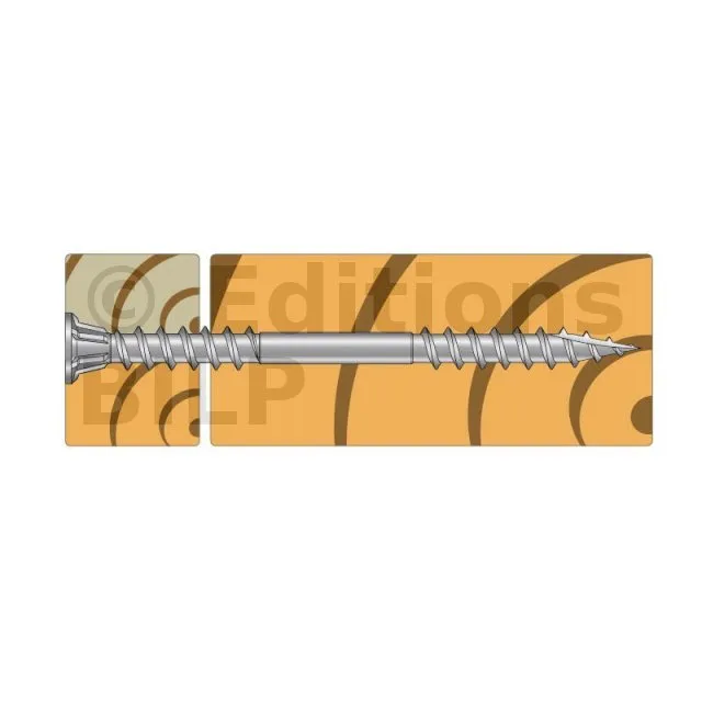 Tête fraisée : s’intègre dans le bois pour une finition parfaite,