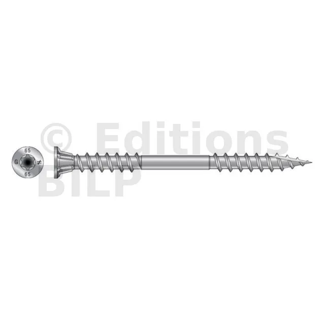 La vis CLS, conforme au DTU 41.2, a été conçue pour l’assemblage d’éléments bois tels que les bardages claire voie ou clin. Elle peut aussi être utilisée pour la fixation de lames de terrasse et de garde-corps en bois. En inox A4, cette vis assure une excellente tenue en extérieur, y compris en milieux salins et chlorés et résiste à toutes les essences de bois, y compris les bois traités.