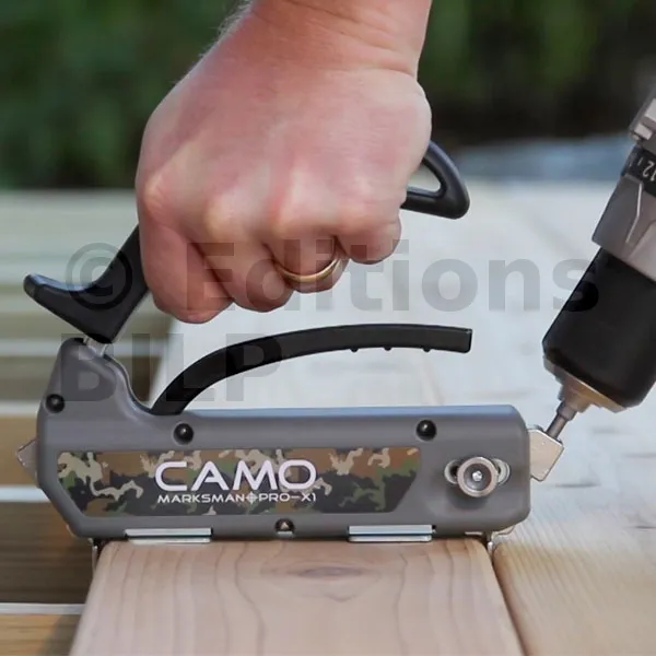 - CAMO dispose d’une gamme complète d’outillage pour la fixation invisible des lames de terrasse.