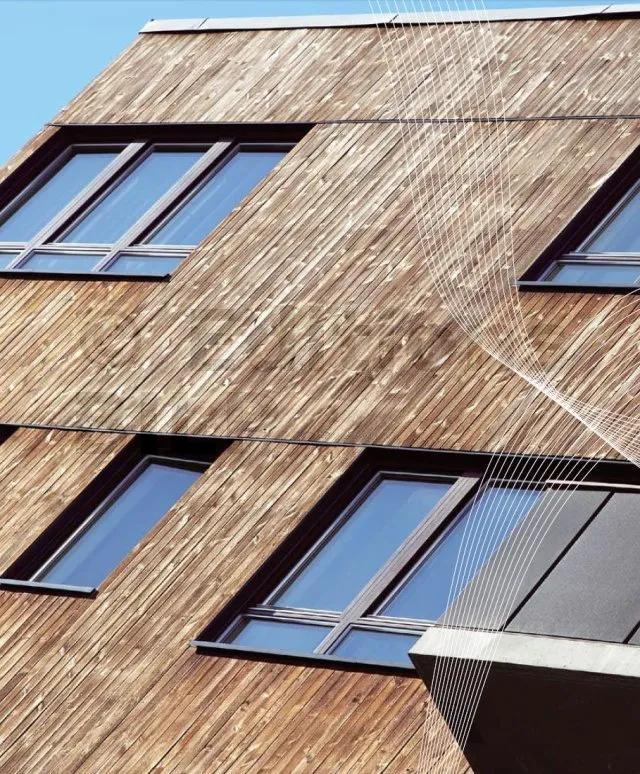 Les revêtement Kebony sont faits de matériaux bruts de première classe, prêt pour l’installation.