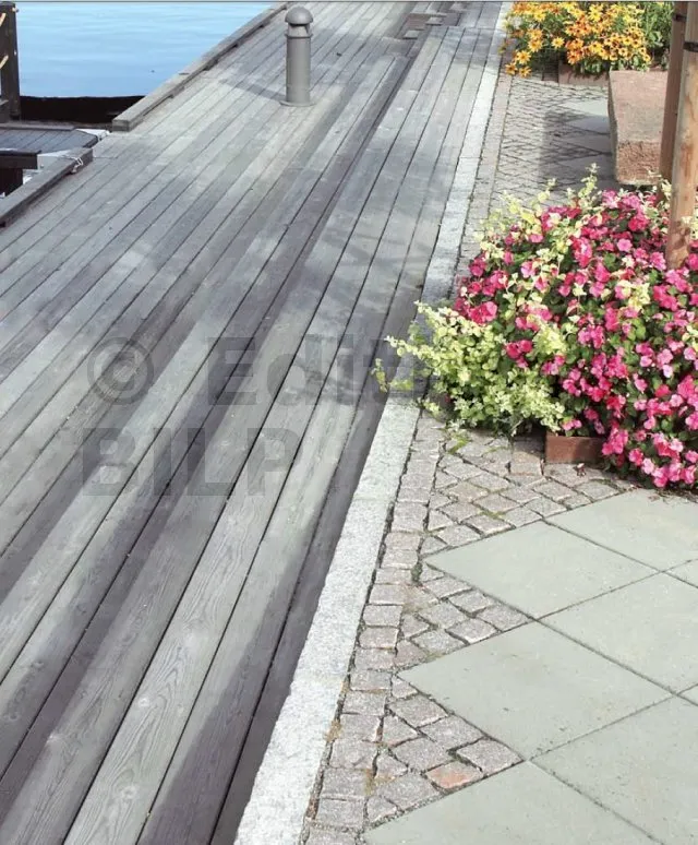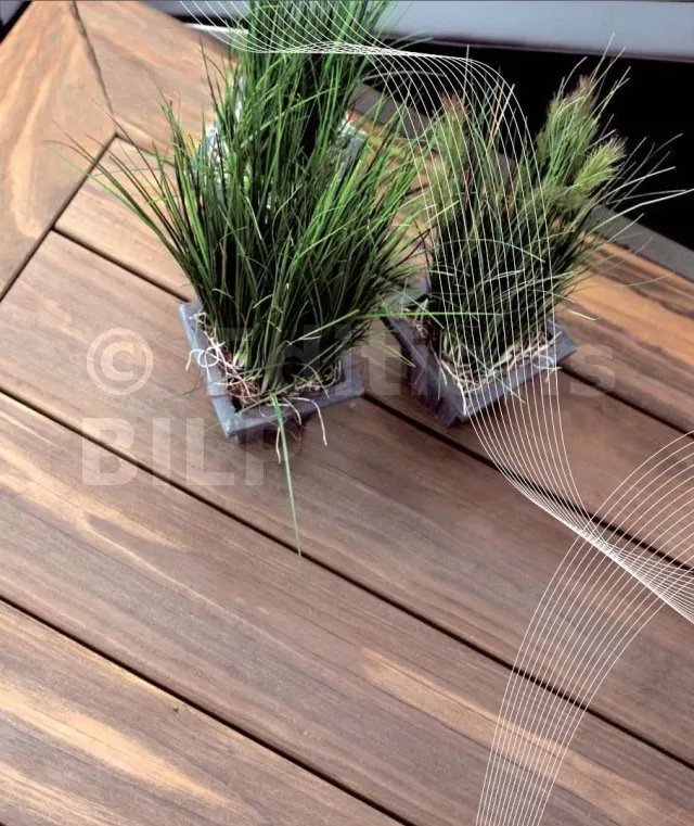 Les lames de terrasse sont brunes avec un beau jeu de couleurs donnant à votre terrasse un aspect exclusif. Dans le temps, les lames Kebony développent une patine gris-argent du plus bel effet. Le traitement Kebony est un produit certifié Eco-compatible, avec une grande durabilité et de faibles coûts de cycle de vie. Les lames Kebony sont disponibles dans plusieurs profils standard et de dimensions.