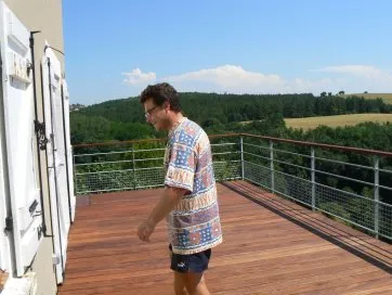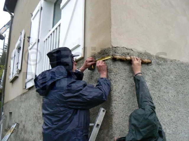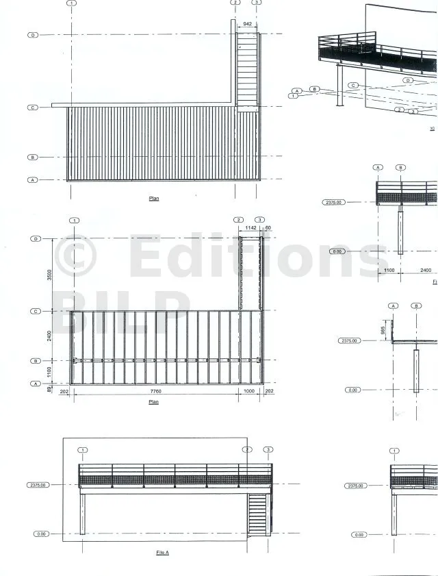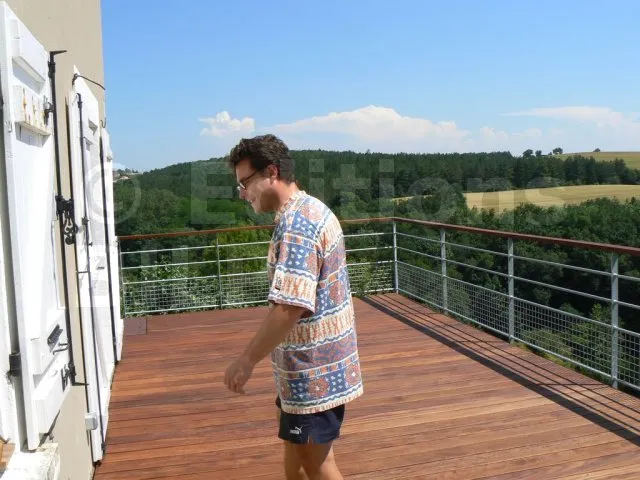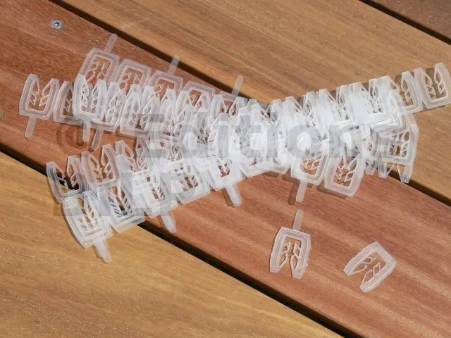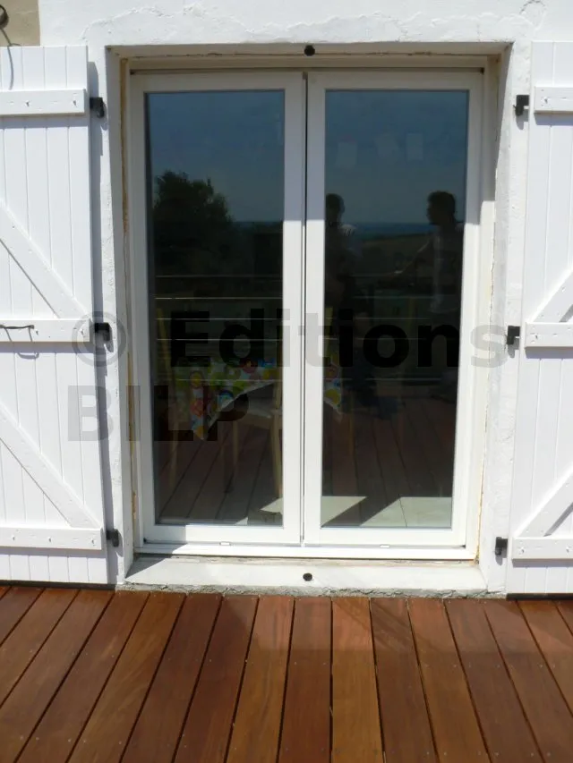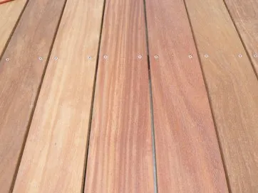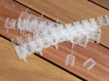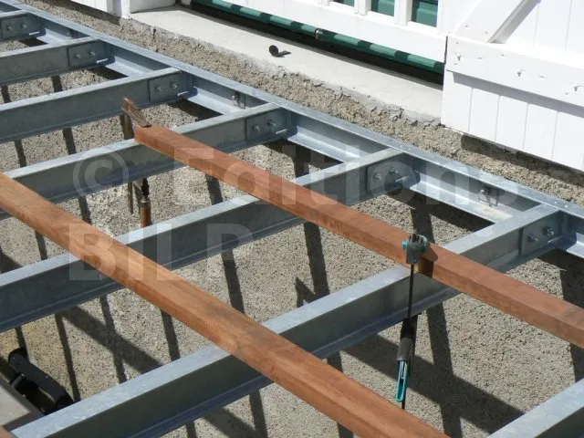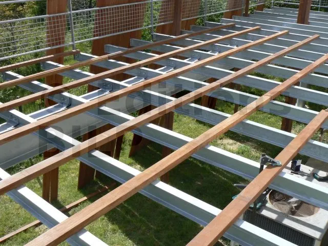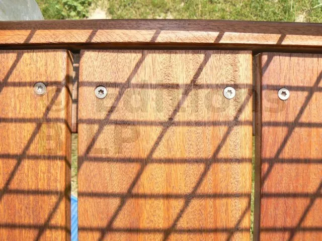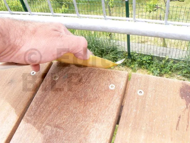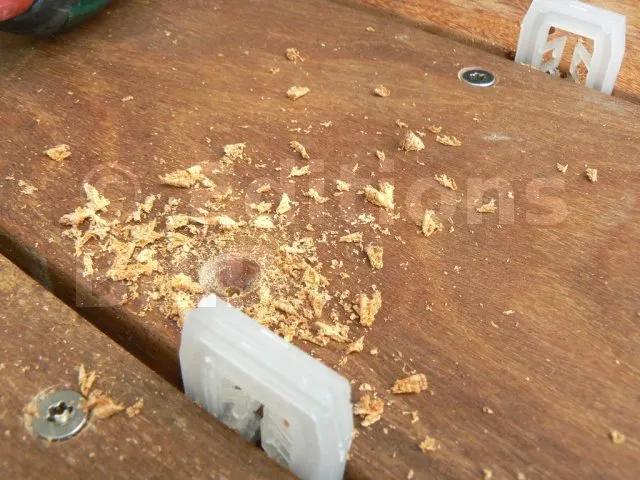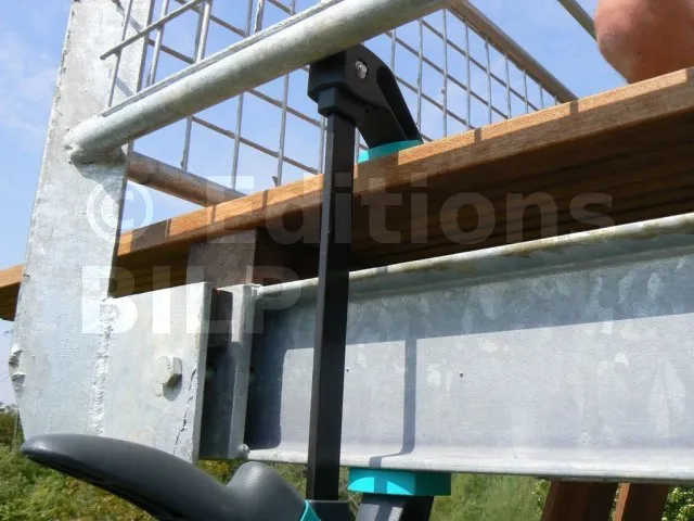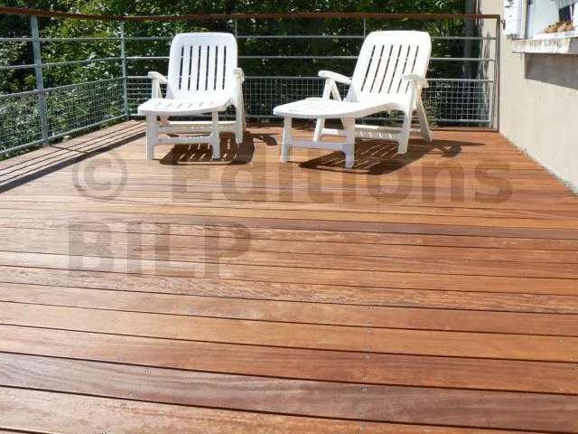 Les lames autour de la dernière marche sont placées très finement grâce à des cales