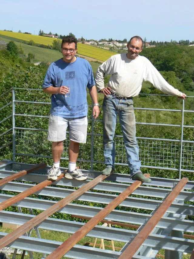 Pour fixer les marches, on a utilisé des boulons à tête bombée