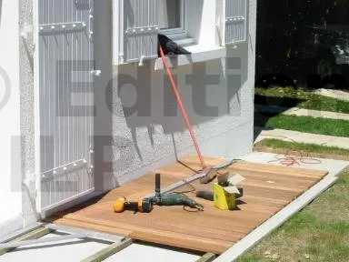 Mais quel bois ? Après avoir écarté le pin traité aux sels de cuivre à cause de sa couleur verdâtre, Bernard profita d’une promotion sur des planches de terrasse en Bankiraï à 22€/m², une aubaine.