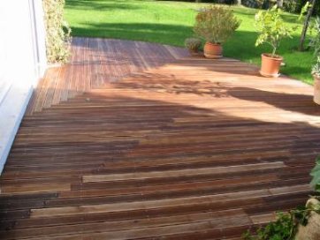 Bernard conservait un mauvais souvenir d’un dallage en pierre. Pas question de répéter les erreurs du passé. Le choix se porta sur une terrasse en bois.