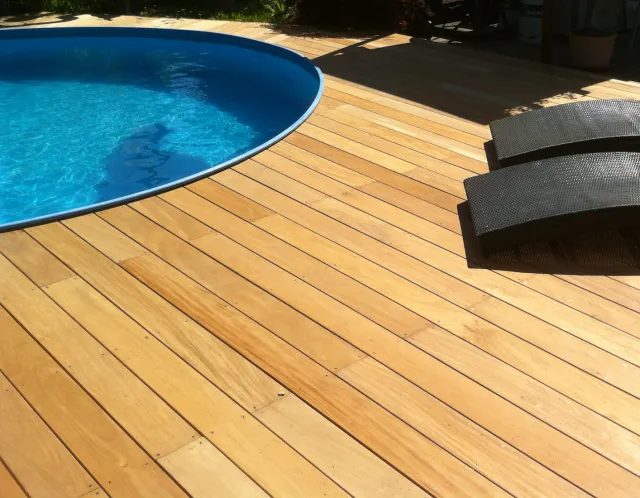 Retrait : Son retrait est légèrement moins élevé par rapport à celui de l’Ipé. Le retrait correspond à la diminution du volume du bois au séchage. Avec la reprise d’humidité, le bois regonfle comme une éponge. C’est pour cette raison qu’il faut penser aux joints et aux espaces.